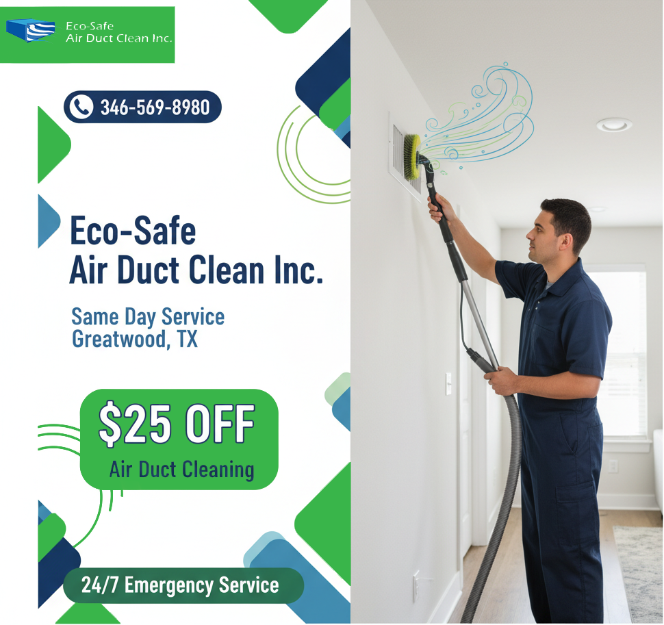 Eco Safe Air Duct Cleaning Greatwood TX was exactly what I look for in a service company. They arrived on time, explained the process clearly, and got straight to work without any upselling. After the cleaning, airflow noticeably improved throughout the property. Reliable, professional, and easy to work with.